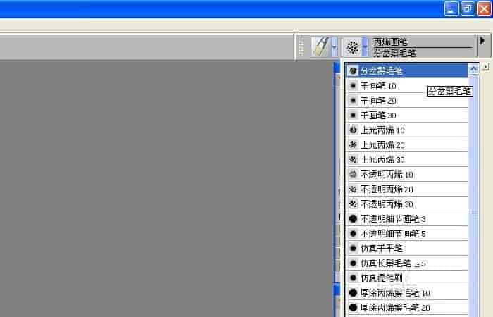 1、打开Painter软件,鼠标左键单击菜单下的【文件】>>【新建】,在新创建的画布中绘图,在右边的画笔选项栏下选择丙烯画笔,如下图所示。