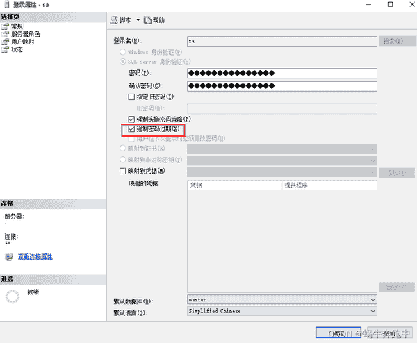 到此这篇关于SQLServer数据库密码短时间强制过期的解决的文章就介绍到这了,更多相关SQLServer密码强制过期内容请搜索以前的文章或继承浏览下面的相关文章希望大家以后多多支持!